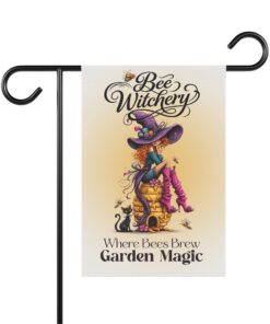 Come out of the Broom Closet and Fly your Magickal Garden Flag! Transform your homestead or garden with this beautiful garden flag. Made with lightweight yet highly durable poly poplin-canvas fabric, these flags feel premium to the touch and will oversee your home for years on end. .: 100% Poly poplin-canvas fabric .: The same design printed on both sides .: Measures (12” x 18”) .: Black inside lining .: Features sleeve at top .: All over print .: Pole not included THIS FLAG IS MADE TO ORDER – PLEASE ALLOW UP TO 3 WEEKS TO RECEIVE.